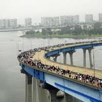 Each year for one day, foot traffic is allowed on the Coronado Bridge.  Today was the day for 2012.  Each year the San Diego Navy MWR (Morale, Welfare, and Recreation) sponsors a race that takes participants from the San Diego Convention Center to Tidelands Park with some of the best views of the city atop the Coronado Bridge.  Eric and I have participated three times.  Each time is yet another great experience.  It is also for a good cause as it helps fund the MWR, which supports the off-duty activities for our Navy personnel.