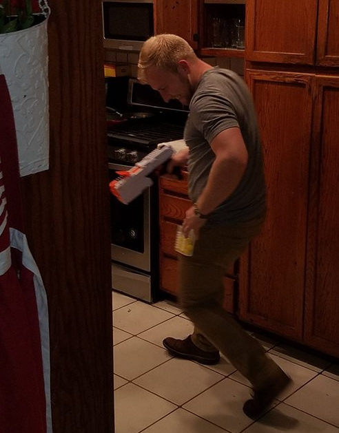 The Nerf Wars went on for about forty-five minutes until everyone realized that while the energy that they had as children seemed limitless, quick bursts of energy as adults burn out quickly without artificial stimulation of Red Bull or coffee…none of which were readily available at 7pm. The guns changed hands multiple times as girls got involved also. My job was mainly to just protect the baby…a role that I readily accepted since running around anything lately would either result in joint pain or gasping for breath. (Did I mention that I’ve achieved my full weight potential for 2018? Yep…I’m starting 2019 with a high so my weight loss looks even more spectacular next year. It’s all in the plan…or so I tell myself!)